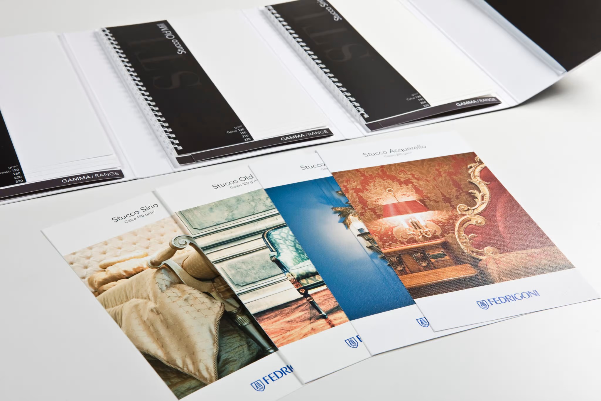 Proponiamo la Carta Fedrigoni Stucco in tre varianti, ognuna realizzata a partire da una carta diversa ma con lo stesso colore: Gesso, un bianco puro e luminoso, ideale per progetti professionali che richiedono precisione e qualità visiva.