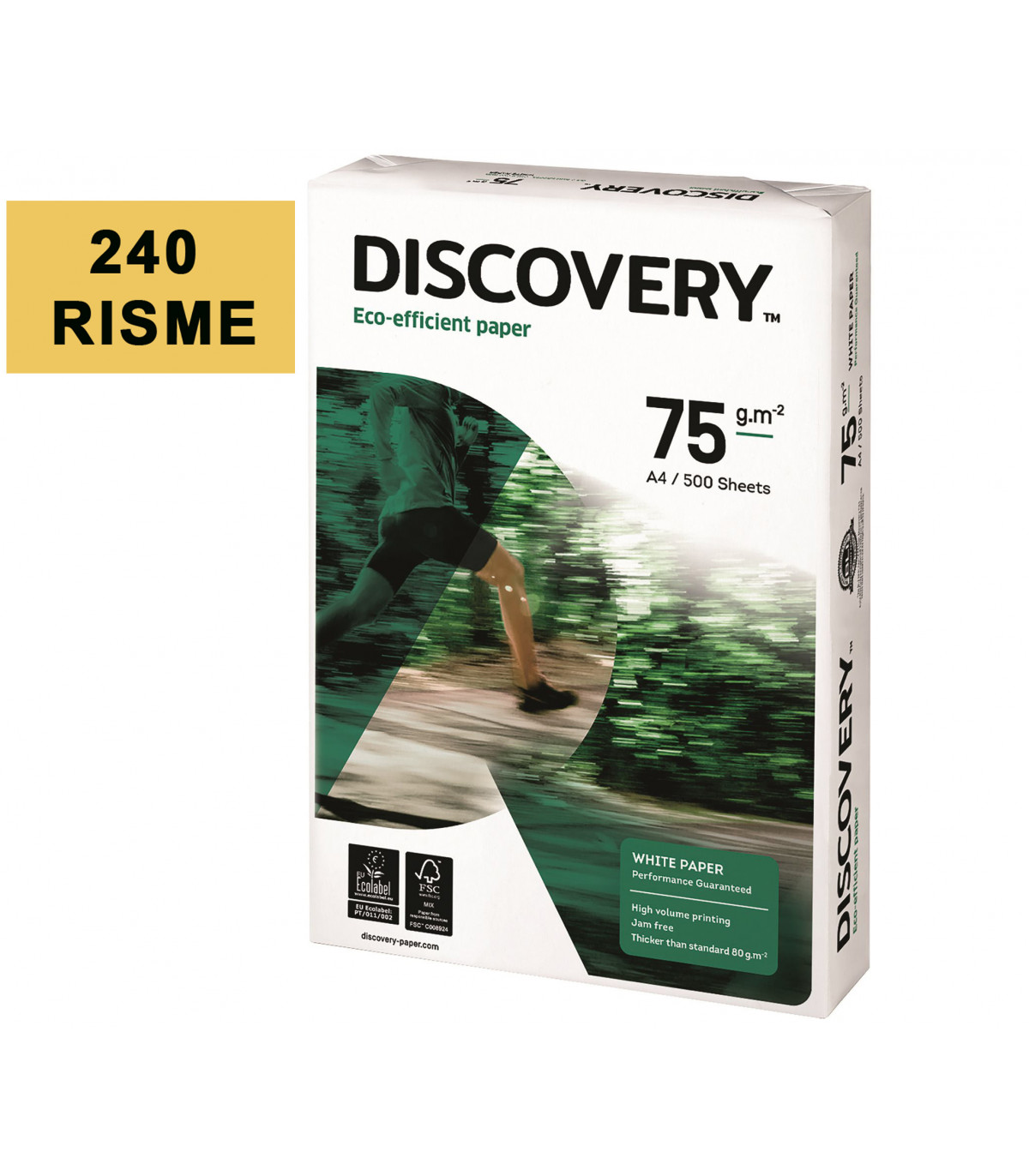 Carta Discovery A4 75 gr - punto di bianco 161 CIE - in bancale da 240 risme da 500 fogli