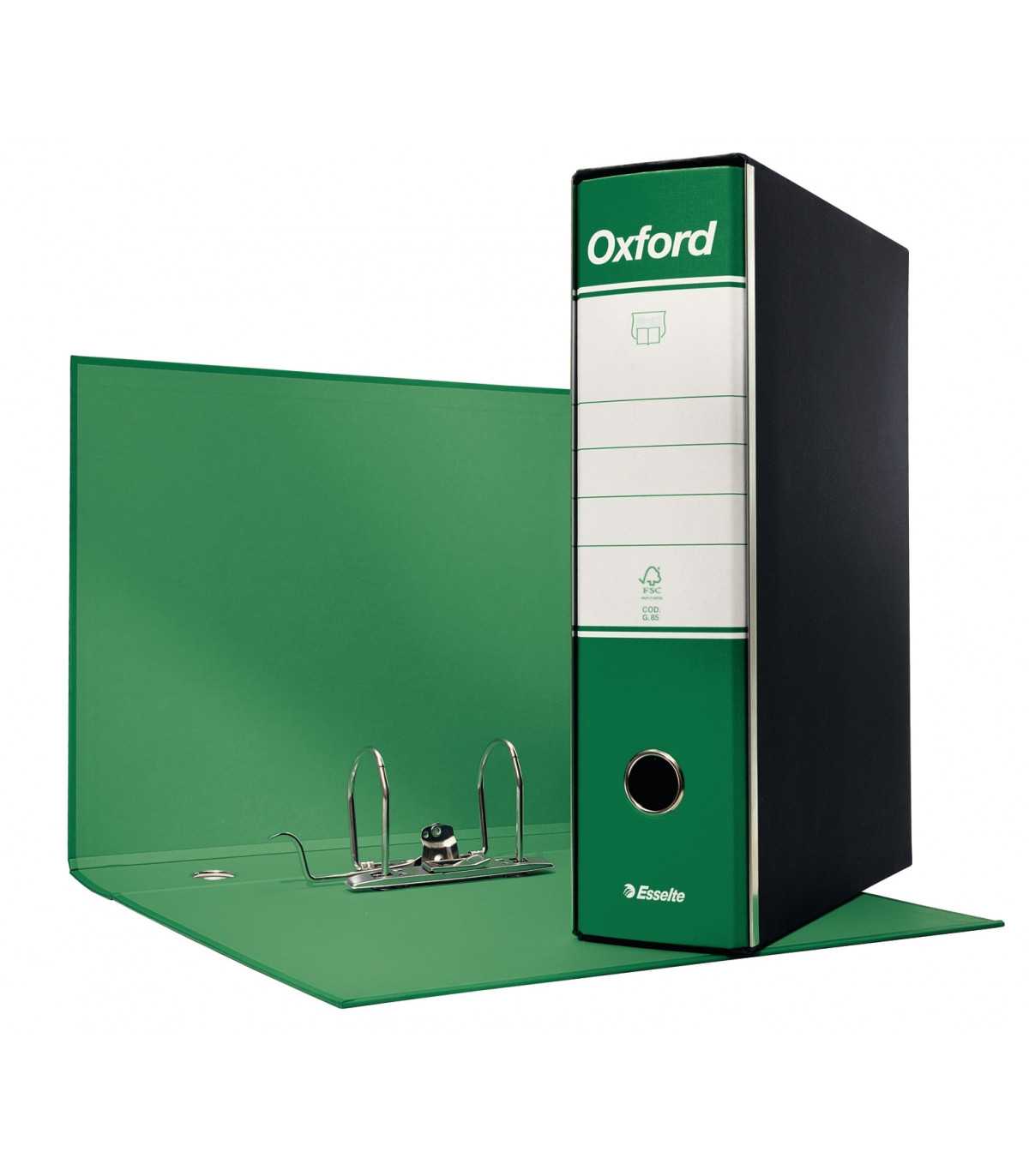 Questi registratori si distinguono per le ampie dimensioni dell'etichetta su cui è possibile scrivere quel che viene archiviato nel registratore e conservare l'archivio in maniera precisa, ordinata e funzionale. Dotato di foro per l'estrazione. La custodia è in fibrone verniciato ed è rinforzata con bordi metallici perchè non si rovinino. Il prodotto è realizzato, inoltre, in materiale riciclato 68%, l'imballo in cartone 100% riciclato e 100% riciclabile. Nuovo Meccanismo N.1: Testato per 10.000 aperture e chiusure con precisione e garantito 3 anni! Il design originale e la qualità dei materiali sono alla base del successo di Oxford. Le bande metalliche di rinforzo mantengono i bordi della custodia perfettamente diritti anche dopo un lungo utilizzo. Il raccoglitore Oxford rappresenta il simbolo dell'elevata qualità della produzione Esselte. Oxford è il registratore più venduto sul mercato italiano e vanta innumerevoli tentativi di imitazione. La resistente struttura in cartone da 2 mm rivestita di elegante carta goffrata, rende questo prodotto incofondibile. Oxford si distingue per il raffinato rivestimento interno di colore pendant con la superficie esterna. Nuovo meccanismo N. 1 testato per 10.000 aperture e chiusure con precisione e garantito 3 anni. Il raccoglitore Oxford è certificato FSC.