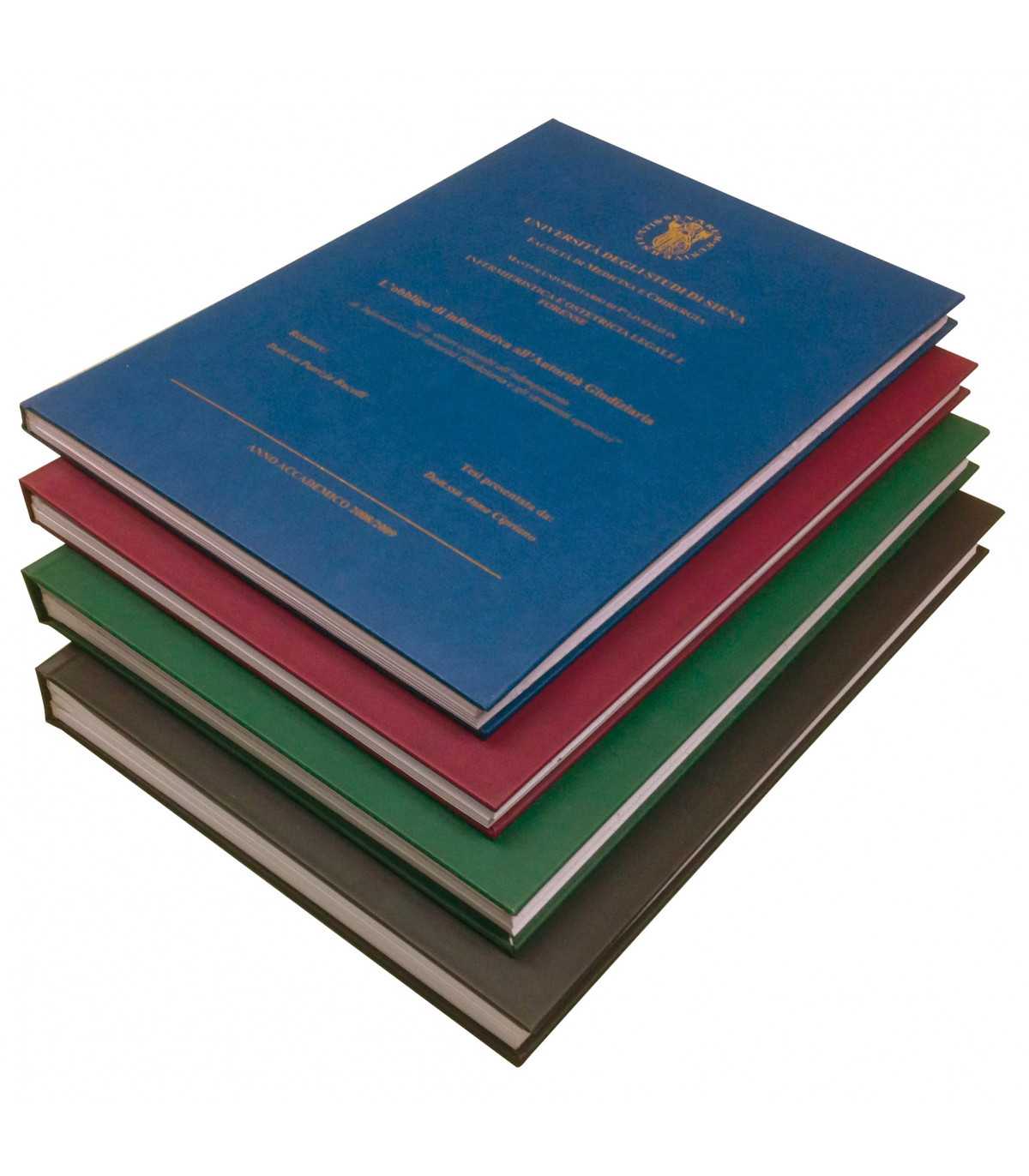 In una fase successiva, il foil oro o argento viene applicato sul toner tramite una seconda pressatura in termopressa, permettendo la personalizzazione della copertina per tesi.